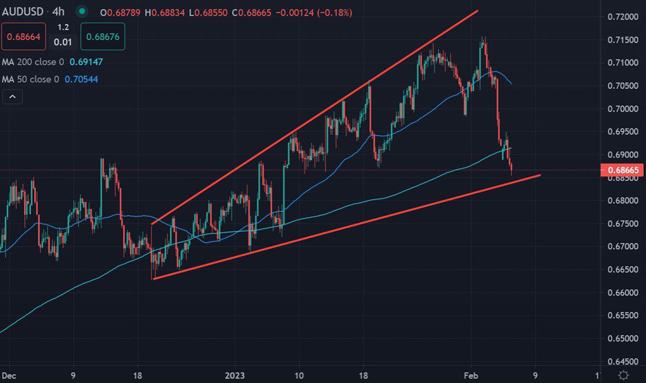 It is noteworthy that the price charts are hinting more severe losses of the 0.6800 level cracks based upon the size of a large wedge pattern, which point towards a further 300 point decline.