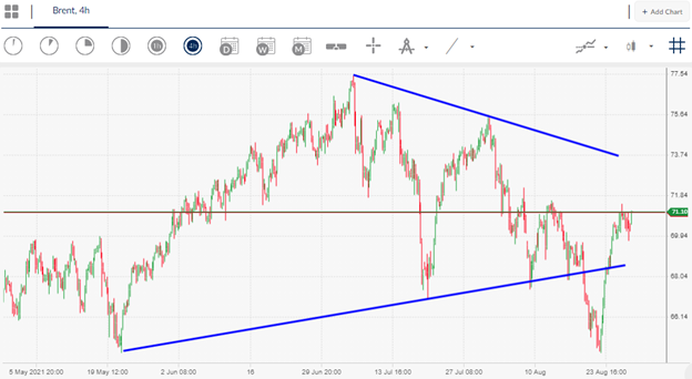 On the technical front, Brent crude has scope to recover higher, however, the recovery is highly dependent on market sentiment and what the data is saying in regard to the global economy. And particularly China, which the oil market is very sensitive towards for obvious reasons.