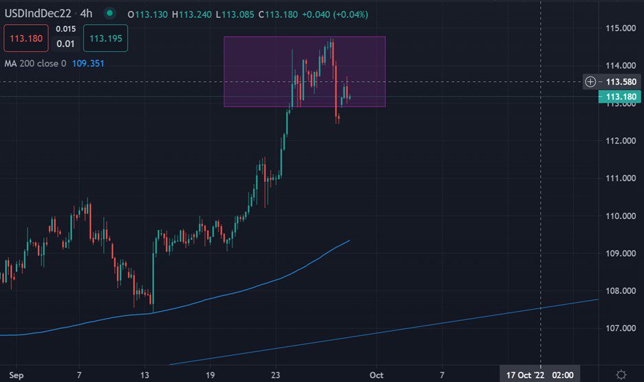 The US dollar index has reversed from a fresh multi-decade high, around the 114.70 level, following a huge parabolic run the index as it gained nearly 400 points in less than one week.