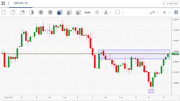 Sterling bulls have the upper hand for now and look to be targeting the 1.4000 handles in the near term, however, risk-off sentiment could cause a pullback at any time. Yesterday the FOMC said will continue to monitor economic progress before easing pandemic support, while effectively gives a nod to more QE if the pandemic progresses.