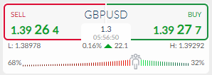 According to the ActivTrader Market Sentiment tool shows that some 68 percent of traders now have a bearish bias towards the GBUSD pair. The bearish sentiment skew is still effectively warning about further losses as shorts get squeezed hard.