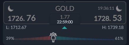 Current sentiment metric towards gold show that traders are getting less bullish. The ActivTrader market sentiment tool shows that 60 percent of traders are bullish towards gold.