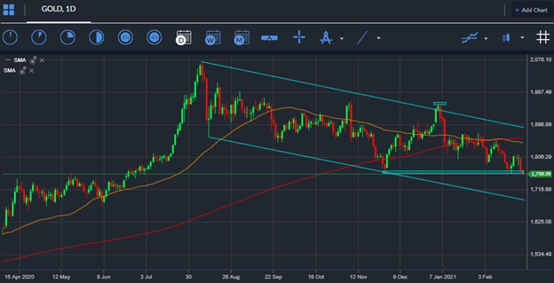 The saving grace for the metal in the near-term could be the US stimulus package. A key vote on the proposed $1.9 stimulus bill is set for tomorrow. The metal could receive a nudge higher if the bill is passed into law.