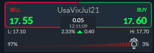 Market sentiment towards the VIX is hugely one-sided right now, with the ActivTrader Market sentiment tool showing that some 97 percent of traders are bearish towards rising volatility in the market.