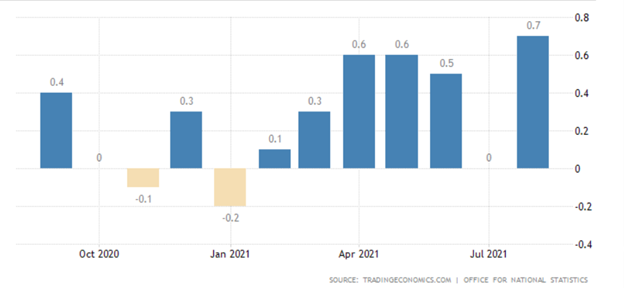 Month over month inflation hit 0.7 percent, however, with the energy crisis raging in Europe and the UK suffering food and petrol shortages it is likely that monthly CPI may be significantly higher.