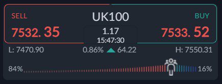 The ActivTrader market sentiment tool showing that only 50 percent of traders currently bullish towards the widely trading index and 50 percent bearish.
