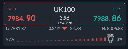 Sentiment remains very bearish, which could be great for further price gains ahead for the UK100. With retail looking to short we could see the FTSE100 holding above the 8,000 level.