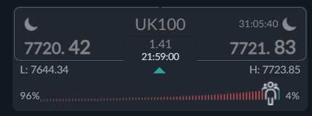 Sentiment remains extremely bearish, which could be great for further price gains ahead for the UK100. With retail looking to short we could see the FTSE100 holding above the 7,700 level.